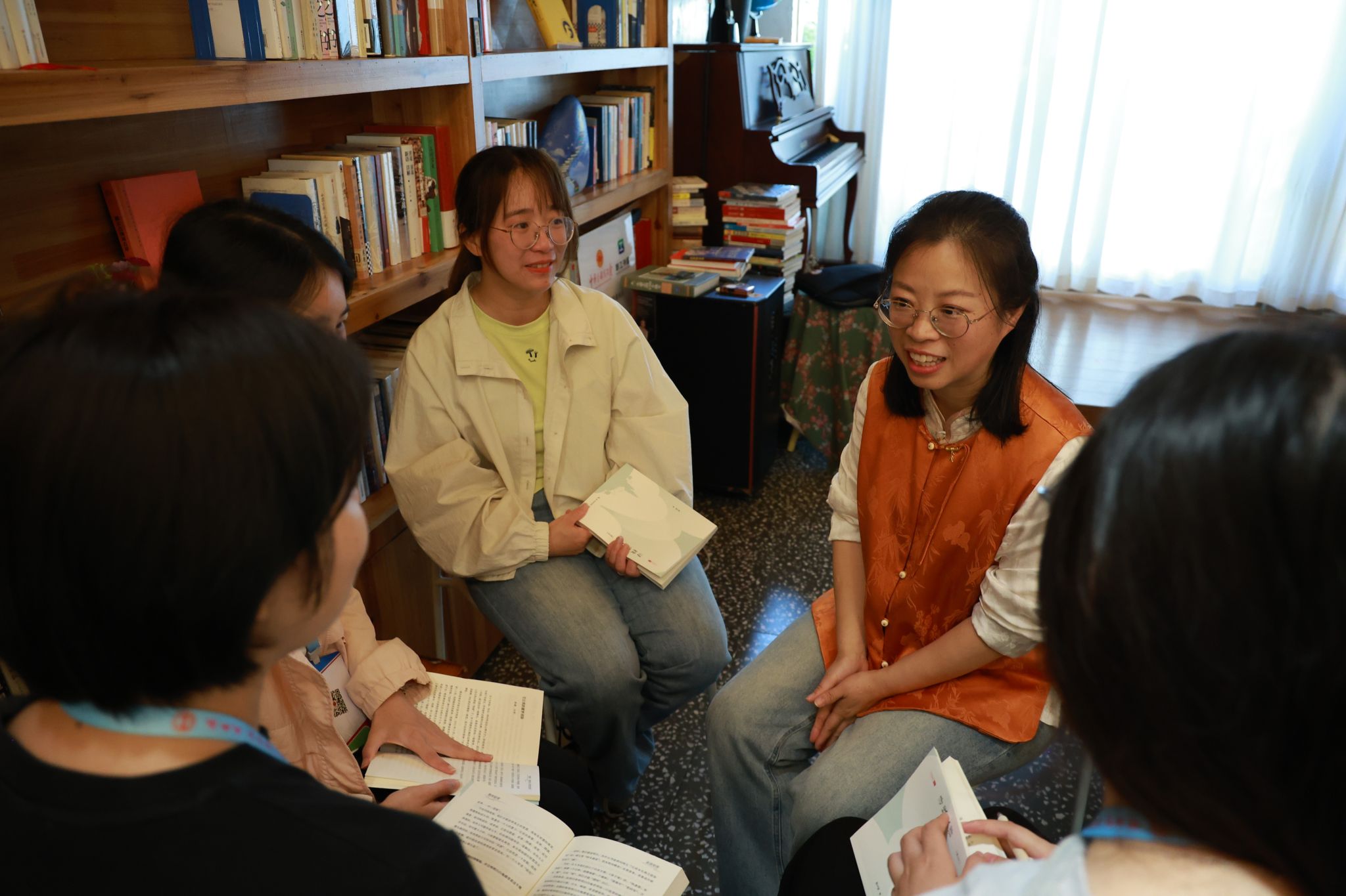 随后,志愿者老师们结合亲身经历畅谈感悟,用真实故事诠释“安详”对生活与成长的意义。有的分享了家人在“安详”理念影响下的心态转变;有的感慨本书是生命中的一盏明灯,照亮了前路,教育不仅在于传授知识,更在于教会青年安顿心灵,让安详成为成长的底色,并鼓励青年学子坚守本心、以沉稳心态面对学习与生活,在书香浸润中成长为眼里有光、心里有爱、行稳致远的新时代青年。